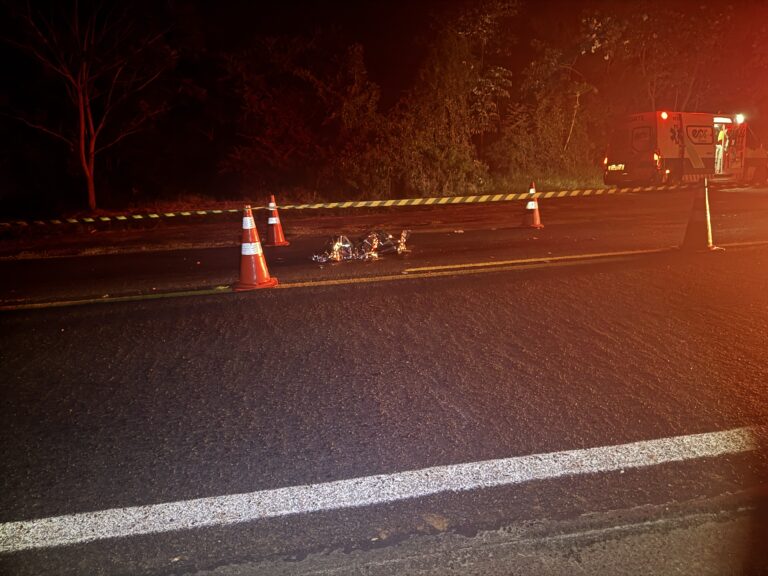 Um sinistro envolvendo um caminhão e uma motocicleta na noite...
