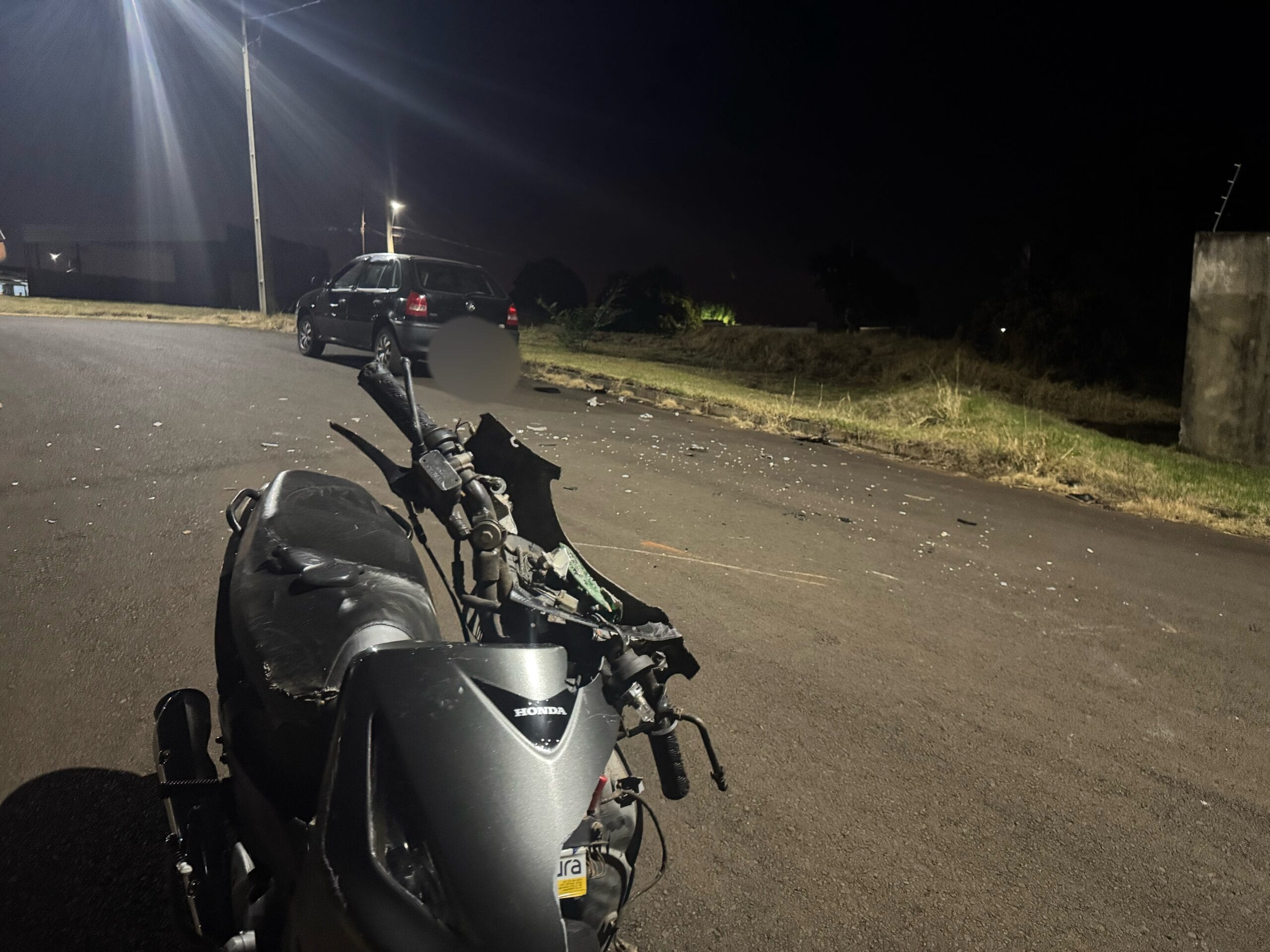 Uma colisão foi registrada no início da noite desta quinta-feira, 14, em Ampére. O acidente ocorreu por volta das 18h45, na rua Aquilino Angonese, no bairro Industrial Gilberto Simonetto, envolvendo um Gol e uma motocicleta.