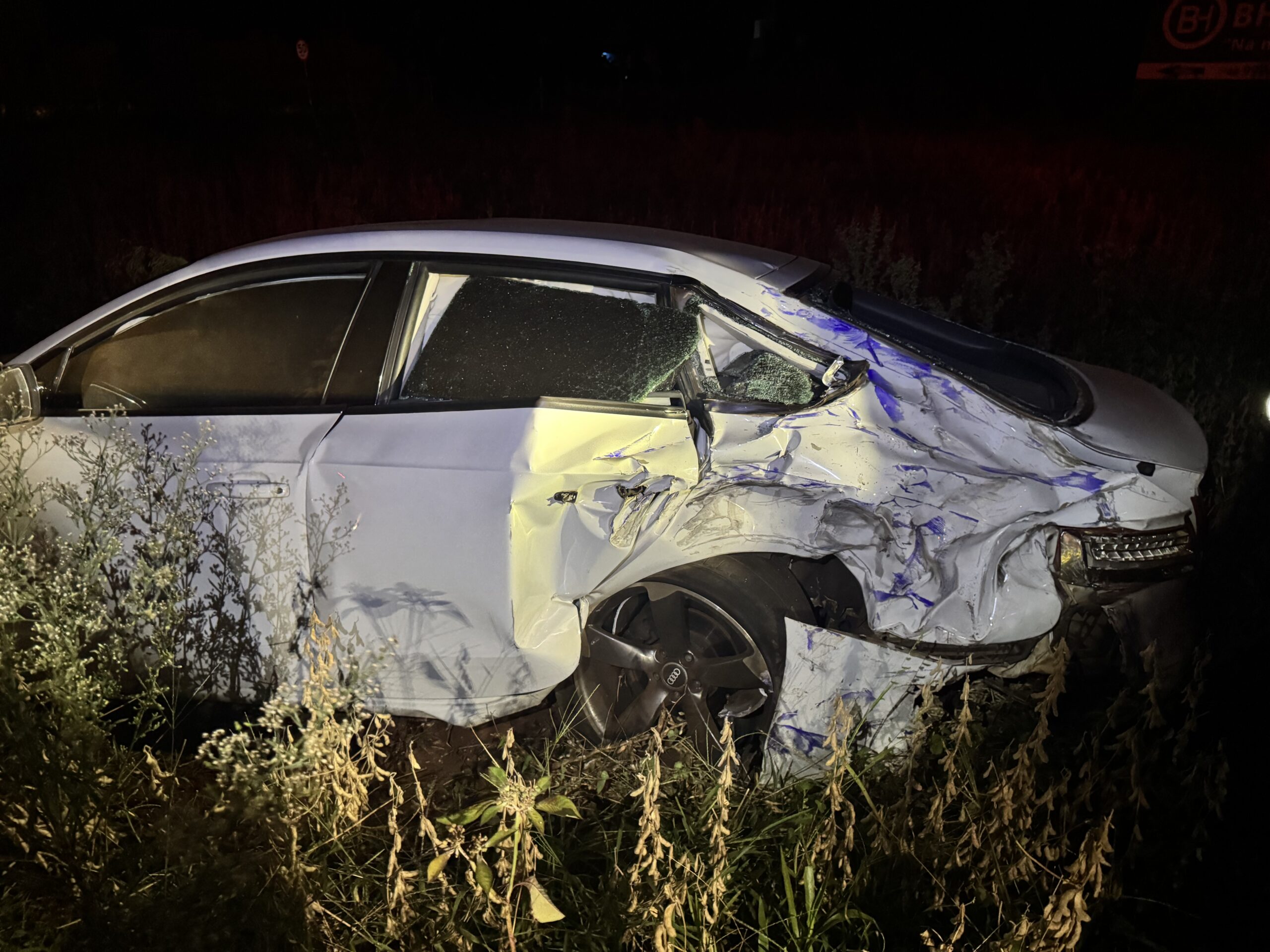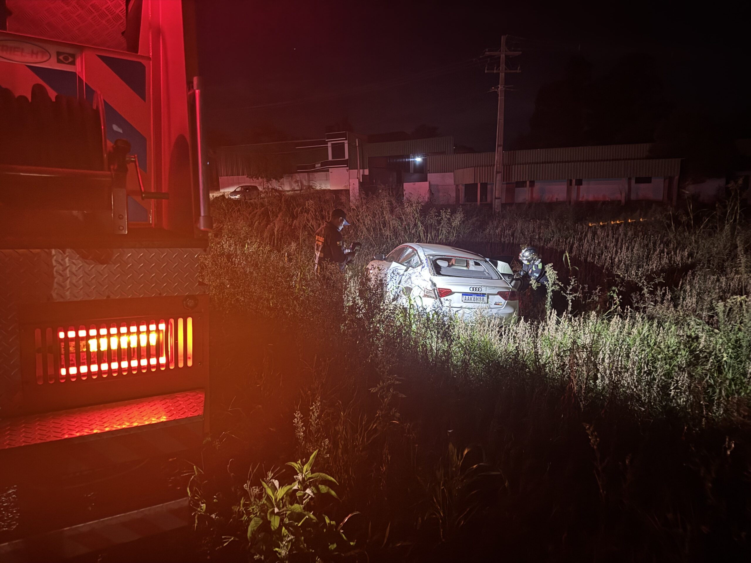 Após o impacto, o Audi saiu da pista e parou em uma área de vegetação às margens da rodovia.