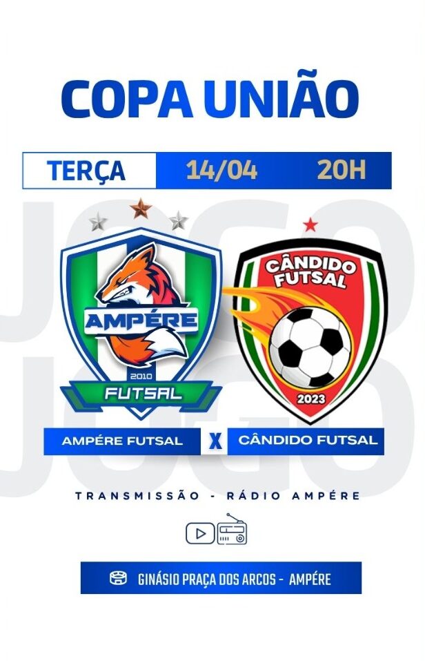 O Ampére Futsal entra em quadra na noite desta terça-feira, 14, pela Copa União. A equipe recebe o Cândido de Abreu Futsal no Ginásio Praça dos Arcos, em Ampére, com a bola rolando a partir das 20h.