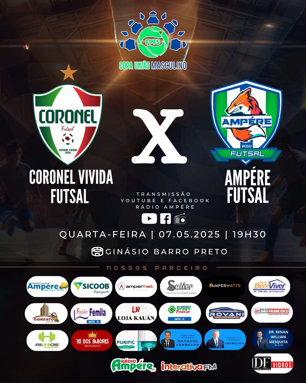 O Ampére Futsal inicia sua caminhada na Copa União na noite desta quarta-feira, 07, enfrentando o Coronel Futsal fora de casa. A partida está marcada para às 19h30, no ginásio Barro Preto, em Coronel Vivida.