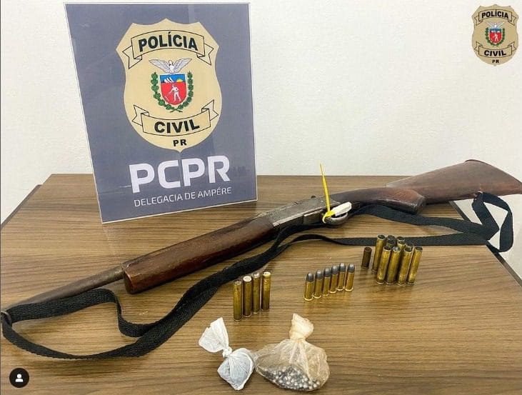 Nesta quarta-feira, 04, a equipe da Polícia Civil da Delegacia de Ampére, sob autoridade do novo Delegado de Polícia, Dr. Antônio Rodrigues, prendeu em flagrante um homem por posse ilegal de arma de fogo e munições.