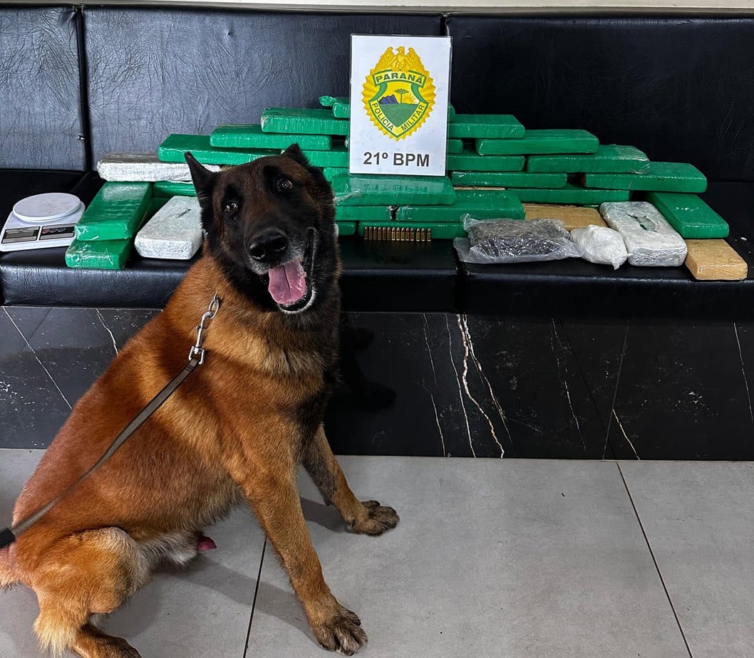 O carro junto com o condutor foi encaminhado ao 21º BPM onde foram realizadas buscas com equipe ROTAM/CANIL, e os cães de faro localizaram nos compartimentos, 25,1 kg de maconha, 2kg de crack, 285 gramas de cocaína, 703 gramas de haxixe e 14 munições calibre 9mm.