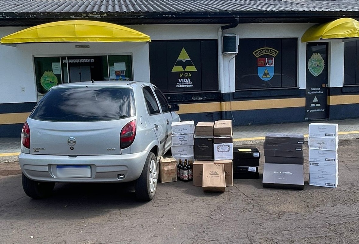 Uma operação de bloqueio realizada pela equipe do Canil da 6ª Companhia do Batalhão de Polícia Rodoviária (BPRv) resultou na apreensão de um carregamento de vinhos de origem argentina. A ação ocorreu no km 24 da PR-566, em Itapejara D’Oeste. Durante a abordagem a um veículo, os policiais perceberam volumes suspeitos cobertos por panos escuros no banco traseiro. Na inspeção, foram encontradas 238 garrafas de vinho sem o devido desembaraço aduaneiro.