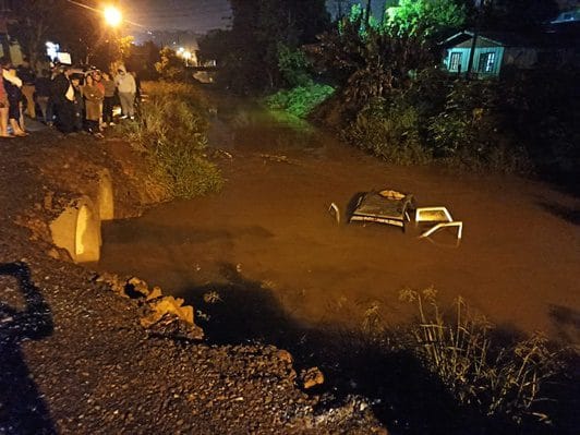 Por volta das 20h30 de segunda-feira (12), o condutor de um veículo perdeu o controle da direção, quando trafegava pela Rua Iguaçu, bairro Sagrada Família, em Dois Vizinhos e caiu dentro do Rio Jirau Alto. O homem ficou preso dentro do veículo e estava se afogando, quando pessoas que passavam pelo local, entraram na água e numa ação rápida conseguiram retirar ele do carro que estava parcialmente submerso.