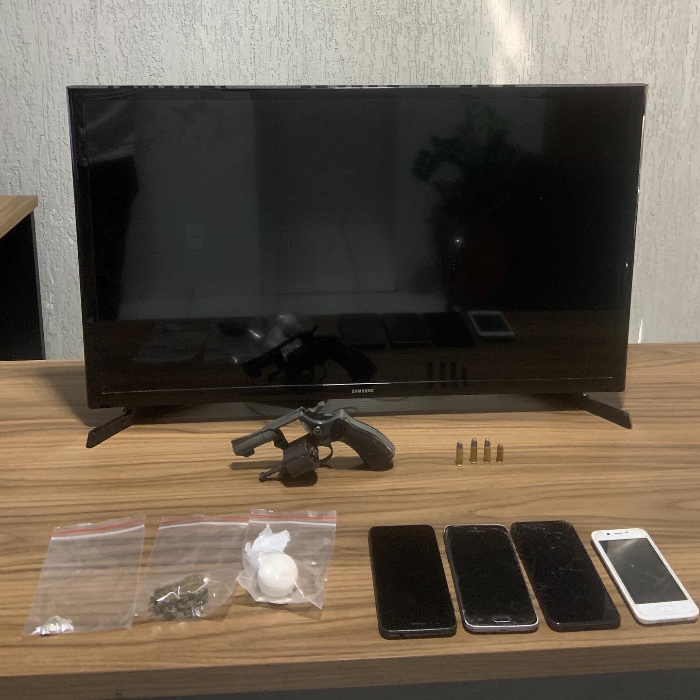 Foram ainda apreendidos celulares dos investigados e uma televisão sem comprovação de origem.