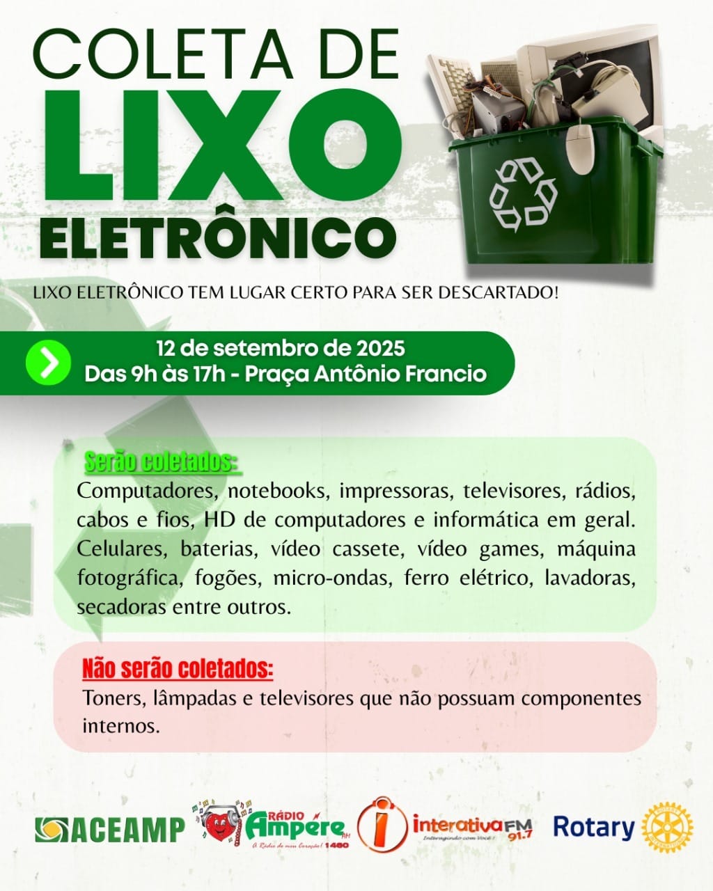 A iniciativa é uma parceria entre a ACEAMP, Rádio Ampére AM, Interativa FM e Rotary, reforçando a importância do engajamento da comunidade em práticas de preservação ambiental.