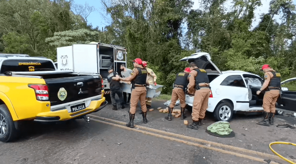 A Polícia Rodoviária Estadual controlou o trânsito e fez a apreensão de uma grande quantidade de maconha que era transportada no veículo Astra. Acredita-se que o entorpecente pese entre 120 e 200 quilos.
