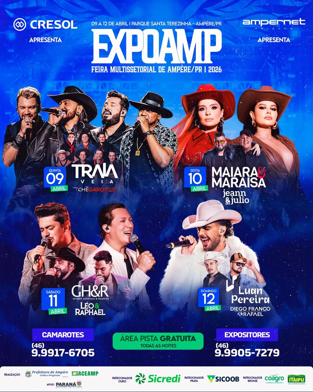 Além da área de negócios, a ExpoAmp 2026 contará com shows de nível nacional, oferecendo acesso gratuito à pista e opções de áreas pagas, como camarotes, que terão condições facilitadas de parcelamento. A organização ressalta ainda o apoio da prefeitura e o reforço na segurança, destacando a união entre poder público, iniciativa privada e comunidade para garantir o sucesso da festividade.
