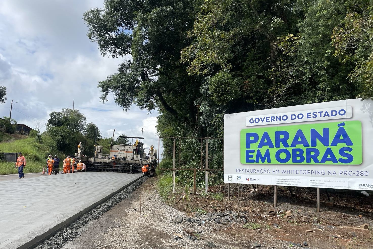 O maquinário e frente de trabalho foram deslocados para o trecho após concluírem a restauração em concreto da PRC-280 entre Clevelândia e Mariópolis, cerca de 19 quilômetros, representando mais da metade do pavimento rígido de concreto previsto nesta obra já executado.