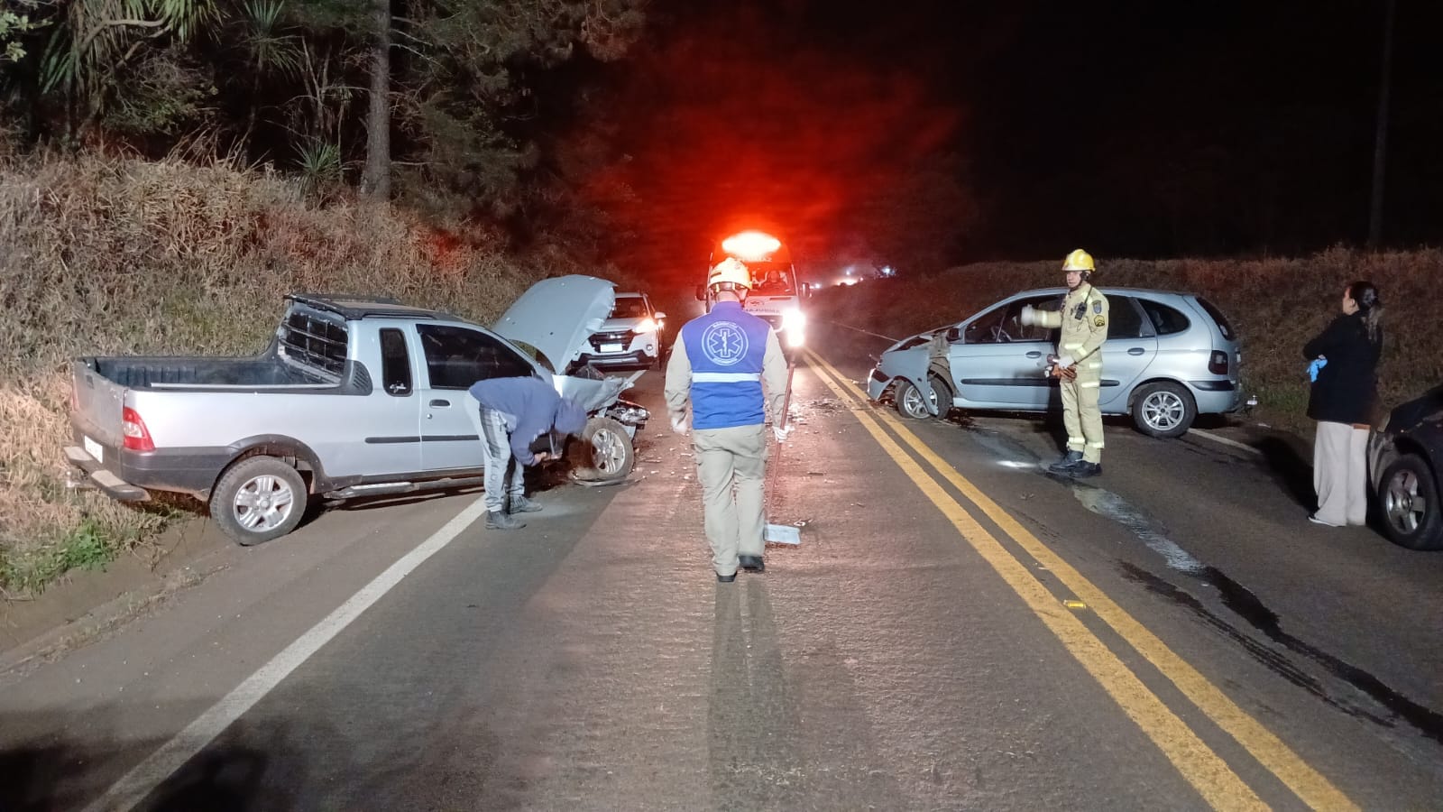 Uma colisão frontal envolveu dois veículos na noite desta quinta-feira (14), na rodovia PR-180 nas proximidades do Hospital Intermunicipal, em Francisco Beltrão. De acordo com informações no local, o acidente envolveu uma camionete Fiat/Strada e um automóvel Renault/Scenic e deixou os dois condutores feridos.
