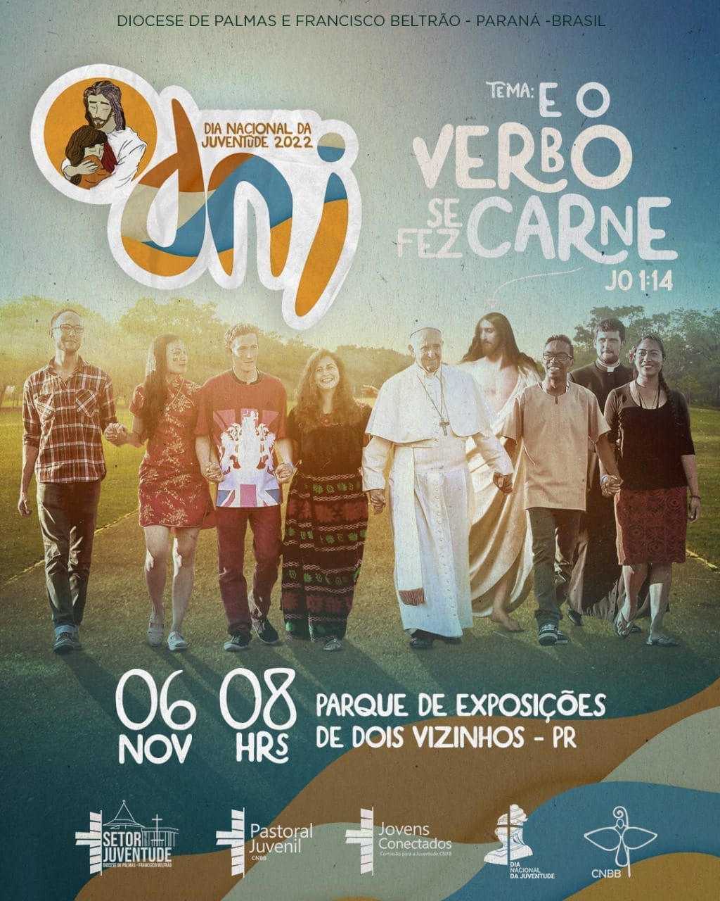 Vem aí um dia especial para os jovens do Sudoeste paranaense, em 6 de novembro, no parque de Exposições, em Dois Vizinhos, o Dia Nacional da Juventude, organizado pela Pastoral Juvenil da Diocese de Palmas-Francisco Beltrão, com o tema: “E o Verbo se fez carne”.