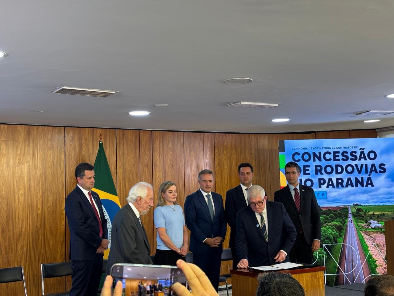 Em cerimônia realizada hoje no Palácio do Planalto, com a presença do Ministro dos Transportes, Renan Filho, da ministra das Relações Institucionais, Gleisi Hoffmann, do governador do Paraná, Ratinho Jr., e do diretor-geral da Agência Nacional de Transportes Terrestres (ANTT), Guilherme Sampaio, a EPR celebra a assinatura do contrato de concessão do Lote 6 do Paraná, leiloado em dezembro de 2024. O projeto conecta 31 cidades estratégicas, como Cascavel, Foz do Iguaçu, Guarapuava e Pato Branco, fortalecendo a mobilidade e promovendo a integração logística regional. Ao longo dos 30 anos de concessão, estão previstos R$ 13 bilhões de investimentos em obras de infraestrutura.