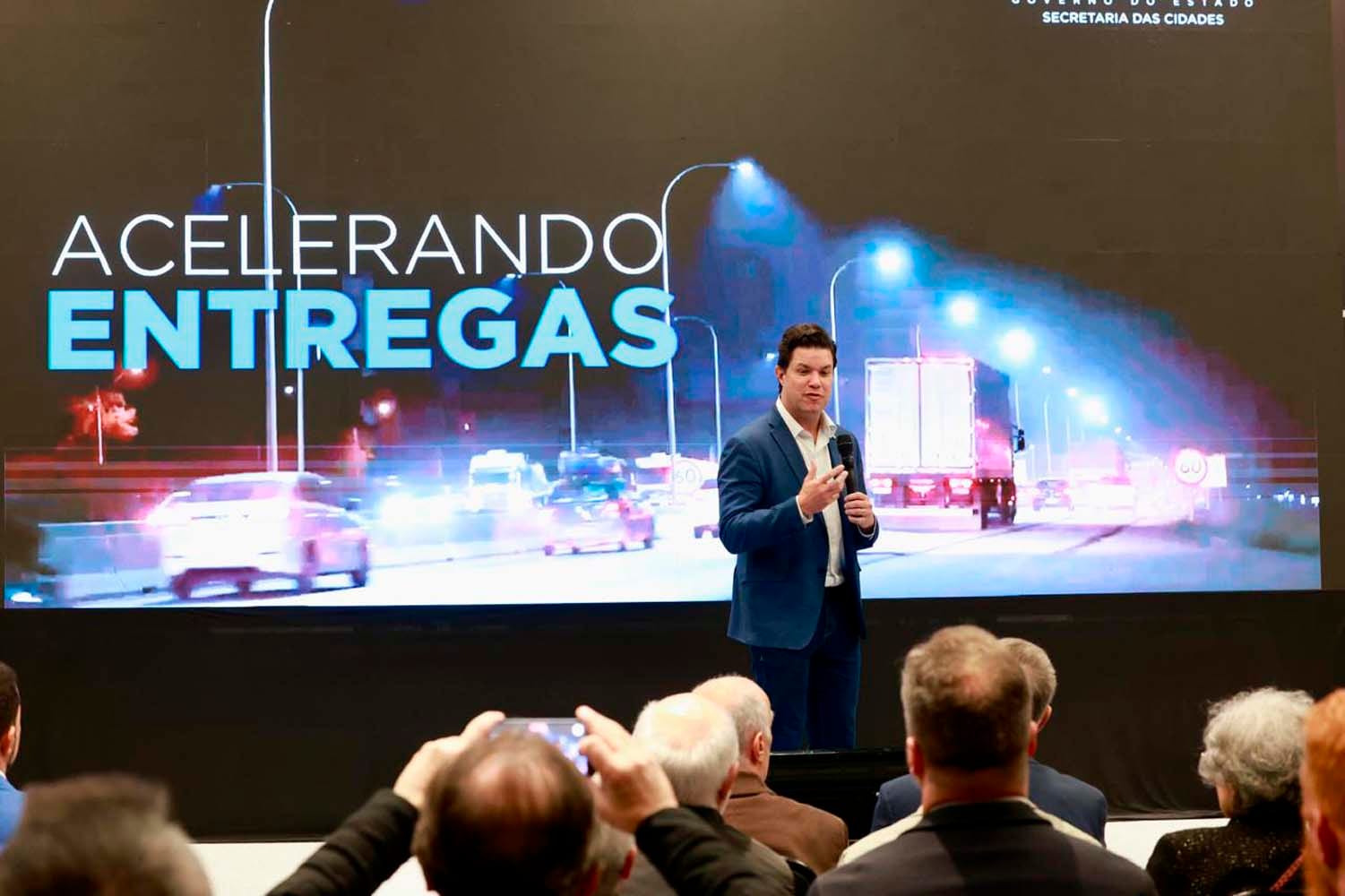 PRESENÇAS – Também acompanharam a apresentação os secretários estaduais de Administração e Previdência, Luizão Goulart; Inovação e Inteligência Artificial, Alex Canziani; o presidente da Agência de Assuntos Metropolitanos do Paraná (Amep), Gilson Santos; o presidente da Companhia de Habitação do Paraná (Cohapar), Jorge Lange, a presidente da Paranacidade, Camila Scucato; o presidente do Conselho Regional de Engenharia e Agronomia do Paraná (CREA-PR), Clodomir Ascari; o presidente do Sindicado da Indústria da Construção Civil no Estado do Paraná (Sinduscon-PR), Carlos Cade; e o deputado estadual Alisson Wandscheer.