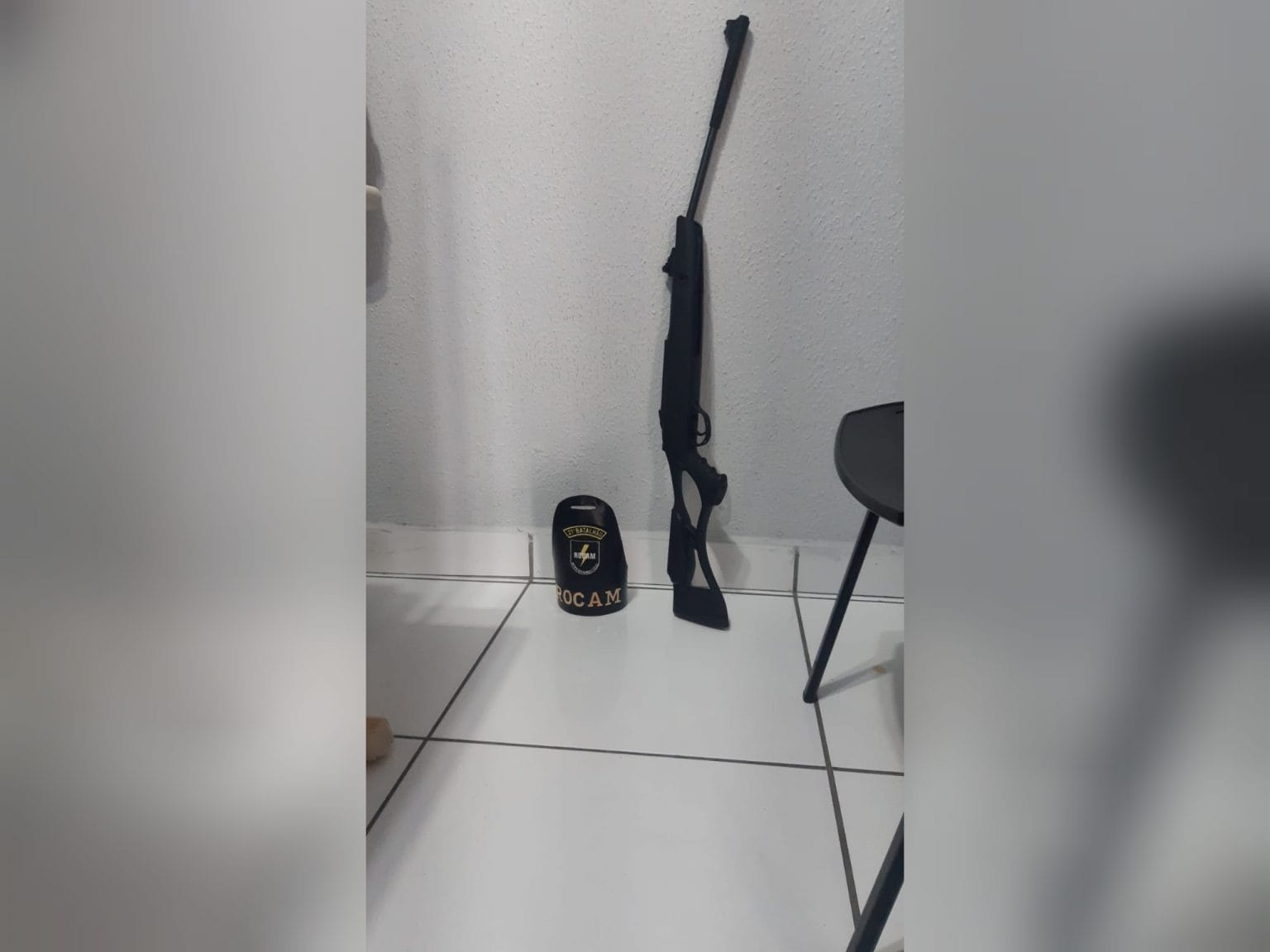 O homem foi abordado pela equipe policial já na residência de seu tio. Ele foi encaminhado juntamente com a arma de pressão calibre 5.5mm até a 19° SDP.