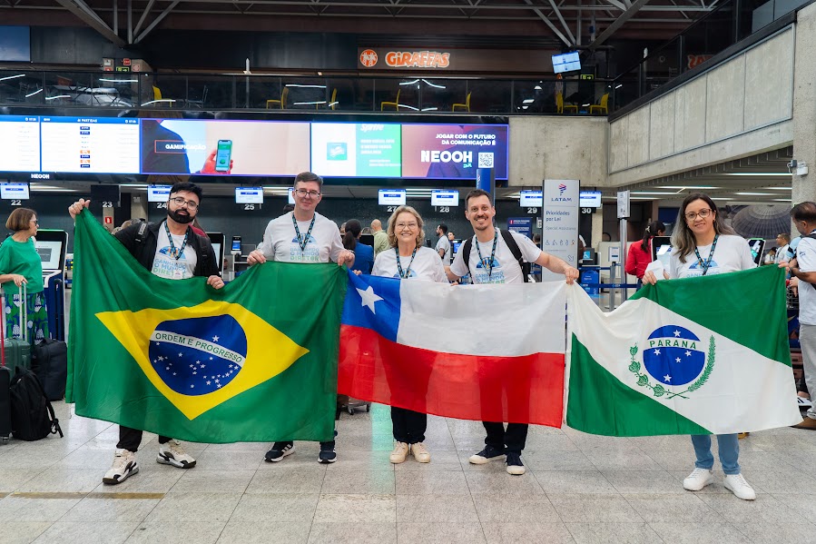 Após as edições dos alunos e dos professores, chegou a vez dos gestores. O saguão de embarque internacional do Aeroporto Afonso Pena, em Curitiba, foi ocupado por 100 diretores da rede estadual que seguiram nesta manhã de sábado (6) rumo a Santiago, capital chilena. A viagem marcou o início do programa Ganhando o Mundo Diretores – experiência internacional voltada à formação de diretores escolares, com atividades voltadas ao intercâmbio de práticas educacionais.