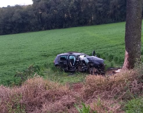 O grave acidente foi registrado na madrugada desta segunda-feira (05) por volta de 01h30 na rodovia PR-493 em Pato Branco, sentido a Itapejara do Oeste, envolvendo um VW/Golf, que saiu da pista e colidiu em um pinheiro, próximo a comunidade de Passo da Pedra.