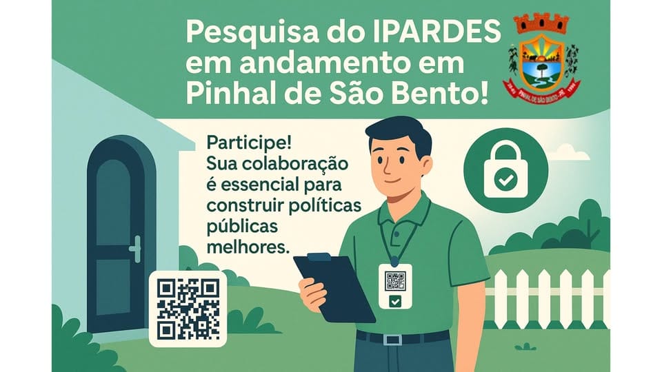 O município de Pinhal de São Bento está participando da Pesquisa por Amostra de Domicílios do Paraná (PAD PR), promovida pelo Governo do Estado, por meio do IPARDES (Instituto Paranaense de Desenvolvimento Econômico e Social). O levantamento tem como objetivo compreender melhor as condições de vida da população paranaense.