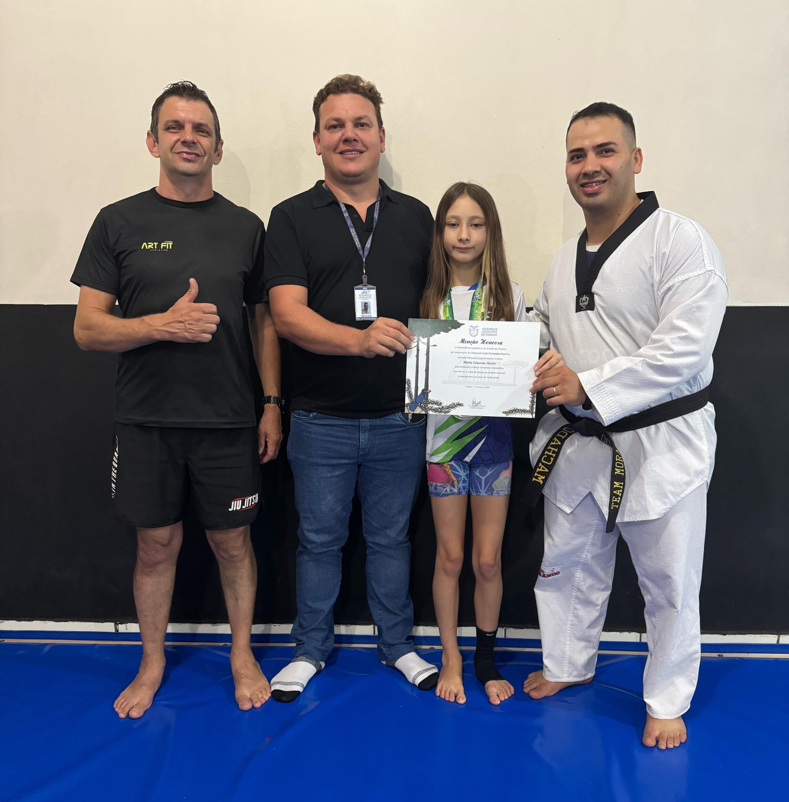 A homenagem ressalta a trajetória da atleta, que vem conquistando importantes resultados no taekwondo e levando o nome de Ampére ao cenário esportivo internacional.
