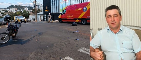 Faleceu no Hospital Regional em Francisco Beltrão nesta quinta-feira (24), Altair Cezar, 55 anos de idade. Ele foi vítima de acidente na tarde de quarta-feira (23), na esquina das ruas Tenente Camargo e Antônio Marcelo, bairro Vila Nova, em Francisco Beltrão Altair conduzia uma motocicleta Honda XRE e se envolveu em uma colisão com uma camionete Fiat/Strada. Ele teve ferimentos graves e foi socorrido inconsciente ao hospital pelo Corpo de Bombeiros, mas não resistiu e faleceu por volta das 4h30 de hoje.
