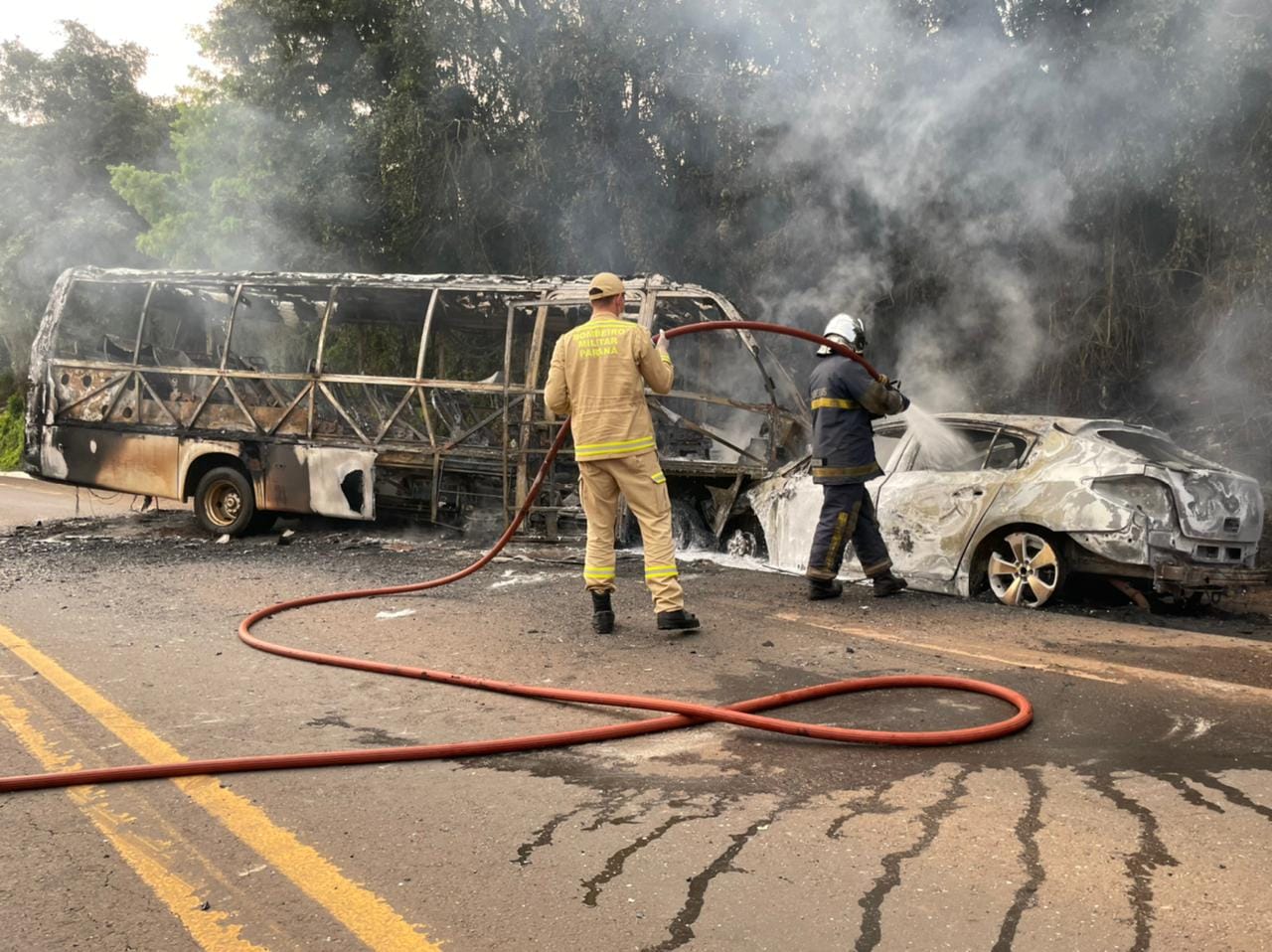 Ao perceber que não conseguiria concluir a ultrapassagem, o condutor do micro ônibus tirou para a esquerda no acostamento, o condutor do Cruze fez a mesma manobra e os dois colidiram frontalmente. Após a colisão os dois veículos pegaram fogo. No coletivo não havia alunos e o motorista teve ferimentos leves.