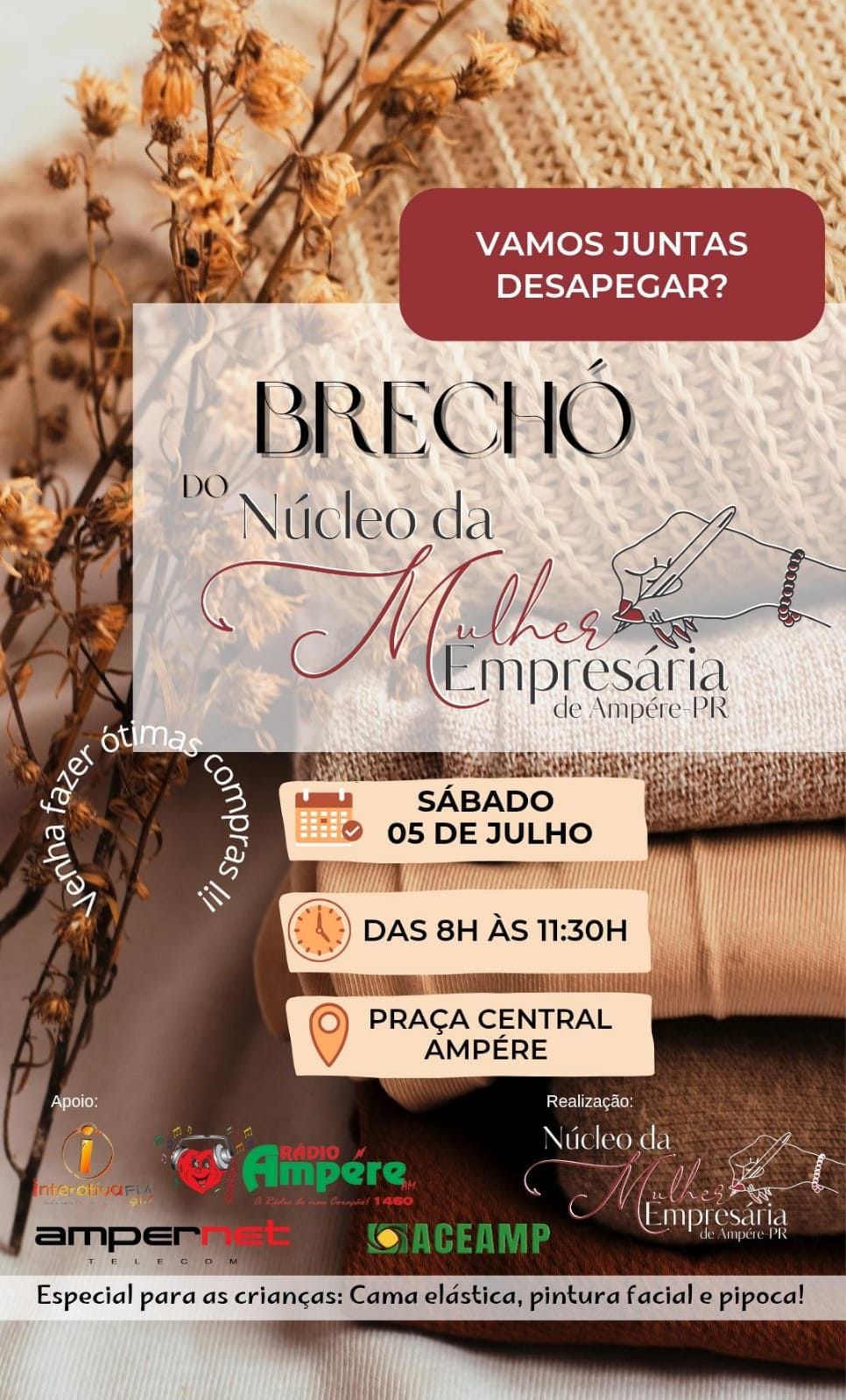 Além das vendas, o evento contará com uma tenda especial da Ampernet, com cama elástica, pipoca e pintura facial para as crianças, garantindo diversão para toda a família.
