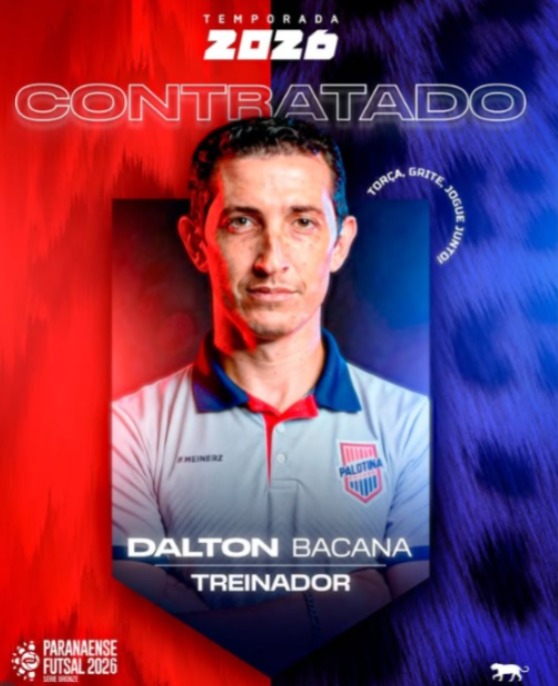 O Palotina Futsal anunciou oficialmente o técnico Dalton Bacana como comandante da equipe para a temporada 2026. O nome do treinador foi divulgado pelas redes sociais do clube, marcando o primeiro anúncio do elenco para o próximo ano.