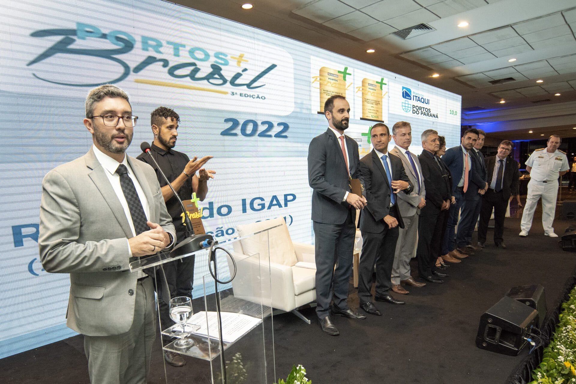 PRÊMIO – O Prêmio Portos + Brasil é uma iniciativa do Ministério da Infraestrutura. “A boa gestão tem um caráter sistêmico. Temos excelência de gestão, com boas práticas de governança, meritocracia. O porto hoje não é mais gargalo, mas solução para os problemas nacionais e internacionais. Com todas as dificuldades, o setor respondeu com altivez e com números recordes, que foram importantíssimos para a economia do Brasil”, destacou o secretário Nacional de Portos, Mário Povia.