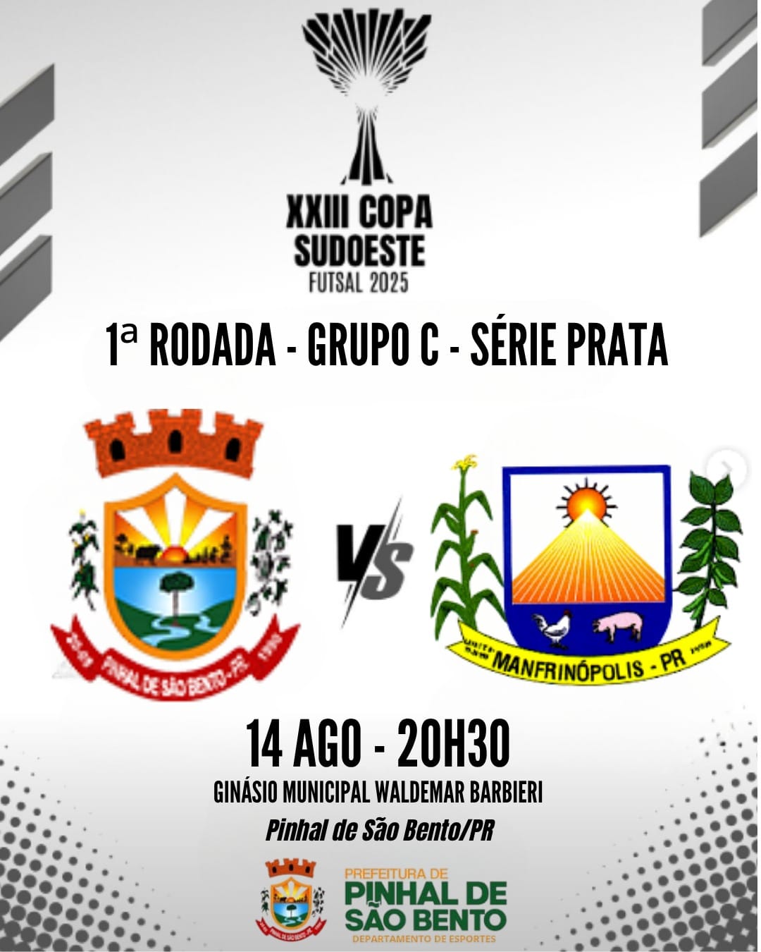 A cidade de Pinhal de São Bento se prepara para um momento histórico no esporte local. Nesta quinta-feira, 14, às 20h30, no Ginásio de Esportes Waldemar Barbieri, o município fará sua estreia na Série Prata da XXIII Copa Sudoeste de Futsal Masculino – Força Livre, enfrentando Manfrinópolis.