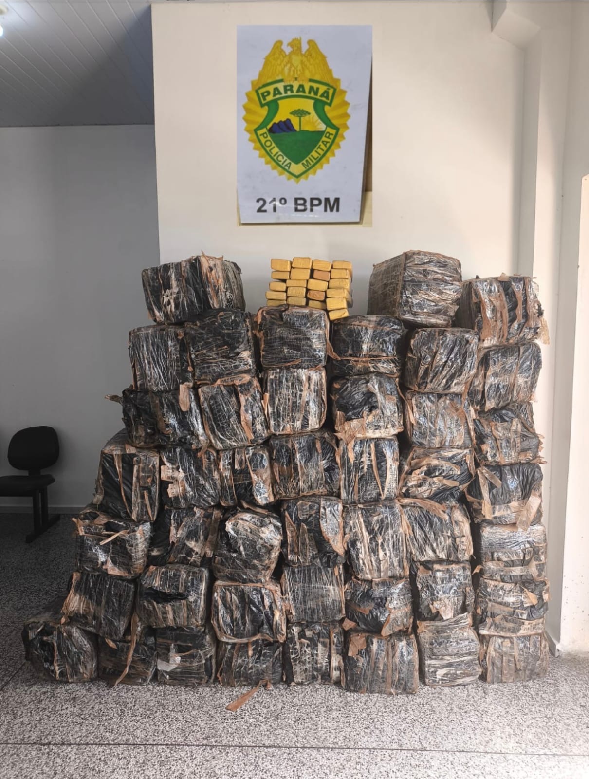 No interior da caminhonete foram localizados 1.048 (mil e quarenta e oito) quilogramas de maconha, caracterizando, em tese, o crime de tráfico de drogas.