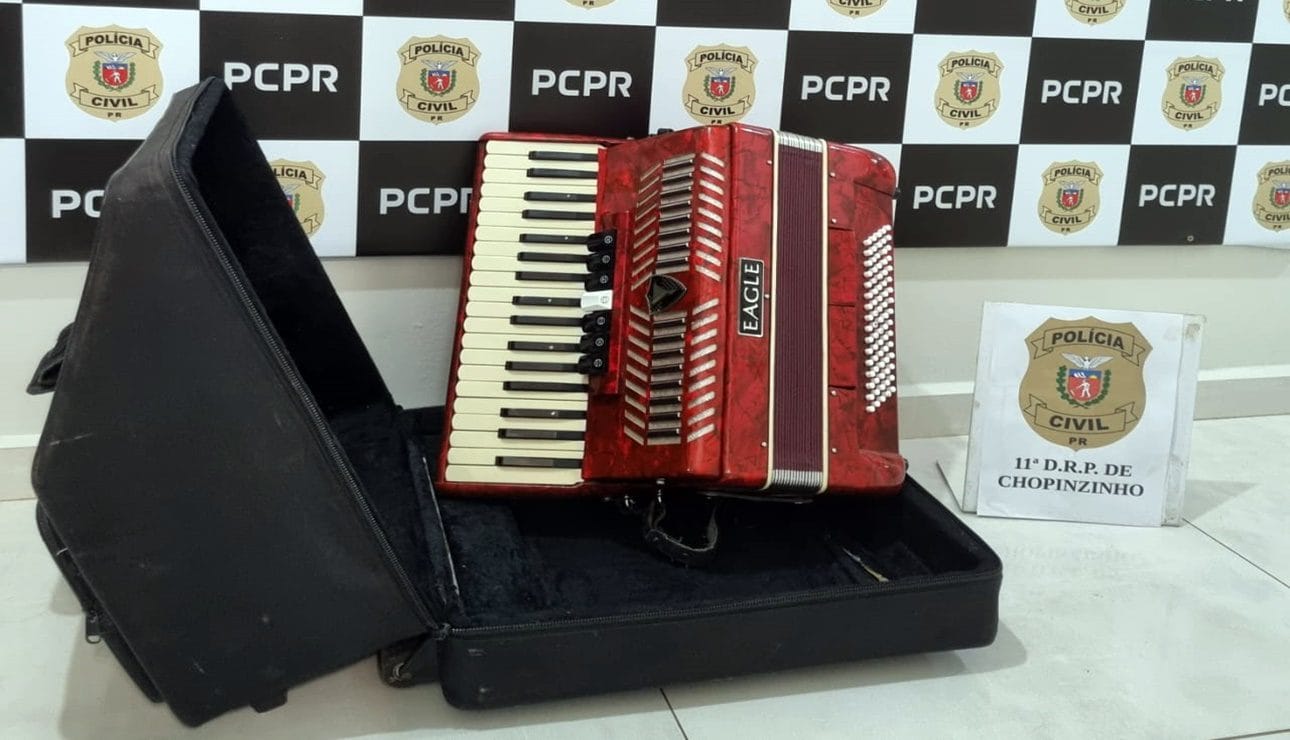 A Polícia Civil de Chopinzinho recuperou na quinta-feira (18), um Acordeon de 80 baixos da marca Eagle avaliado em 5 mil reais, furtado de uma residência na última quarta-feira (17).