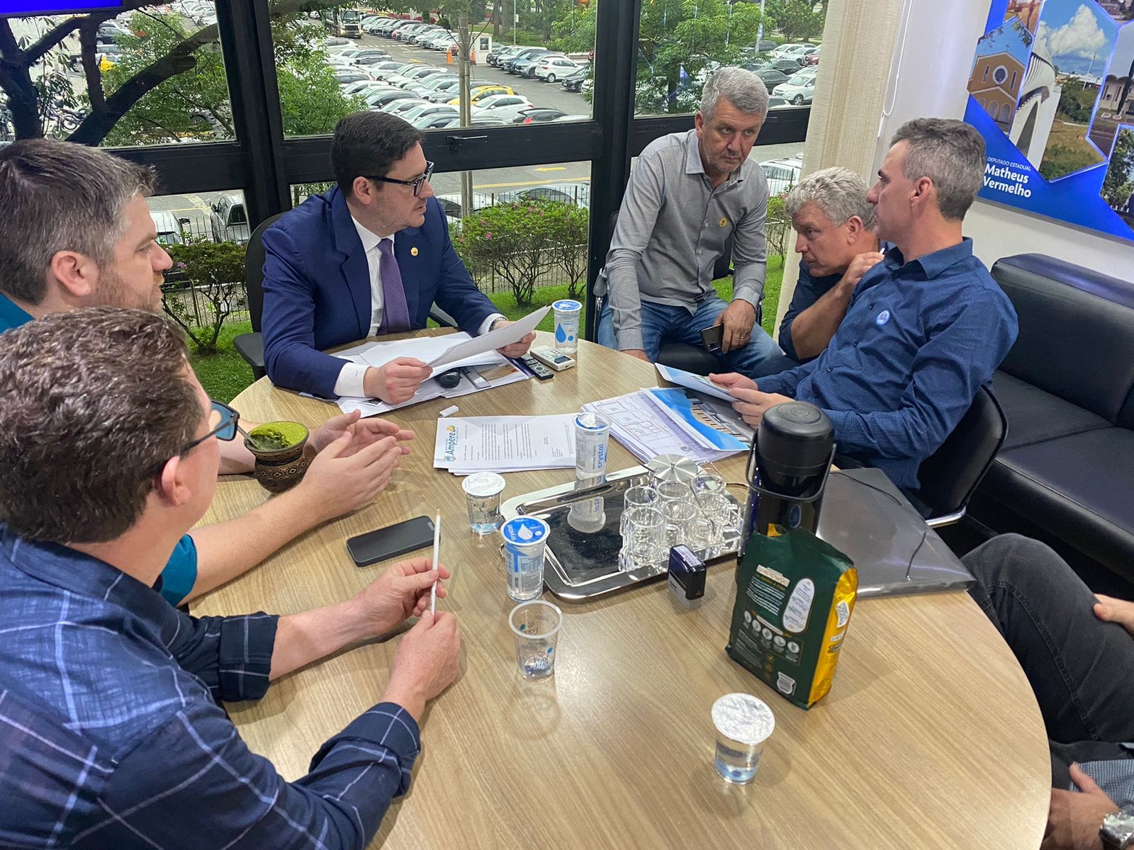 O Ginásio de Esportes do Rondinha em Ampére está prestes a receber uma grande reforma. Nesta segunda-feira, 25, o prefeito Zuca Luquini, acompanhado pelos secretários Douglas Potrich (Administração), Antônio Deoti (Finanças), pelo arquiteto da prefeitura Paulo Marchiori e pelo presidente do Ampére Futsal Rodrigo Machado, entregaram para os deputados Matheus Vermelho (Estadual) e Vermelho (Federal) o projeto que visa dar uma nova cara ao principal ginásio do município. O investimento deve ficar em torno de R$ 2,5 milhões.