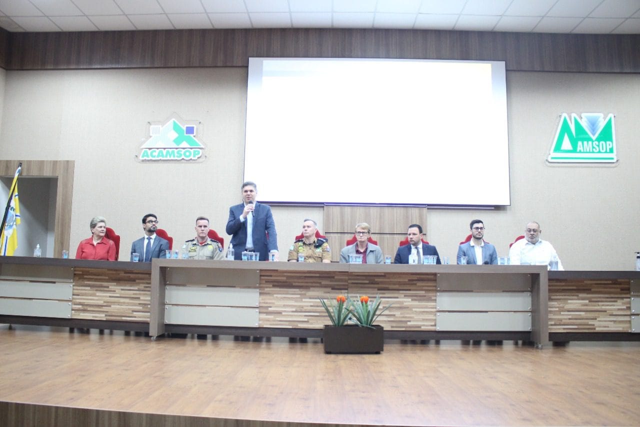 Na mesa de honra, estiveram o presidente da Amsop e prefeito de Francisco Beltrão, Cleber Fontana, comandante do 21º Batalhão da Polícia Militar, Major Pitz, presidente da Câmara de Vereadores de Francisco Beltrão, Quintino Girardi, representante do comando do 10º Grupamento de Bombeiros, Capitão Klein, delegado titular da 19ª SDP, Dr. Ricardo Moraes, juiz Antônio Evangelista Netto, promotor de Justiça de Marmeleiro, Dr. Arthur Jonas Mendonca e Araújo, chefe da Polícia Científica em Francisco Beltrão, Patrick Souza e a chefe do Núcleo Regional de Educação (NRE Francisco Beltrão), Lurdinha Bertani.