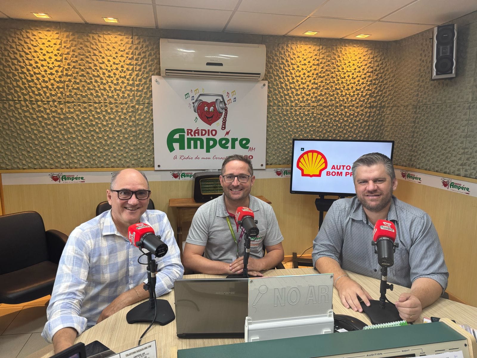 Nesta segunda-feira, 07, o prefeito de Ampére, Douglas Potrich, e o vice-prefeito, Celso Saggiorato, participaram ao vivo do Jornal RA 2ª Edição, da Rádio Ampére. A entrevista marcou um momento importante para a atual administração, que se aproxima dos 100 primeiros dias de mandato.