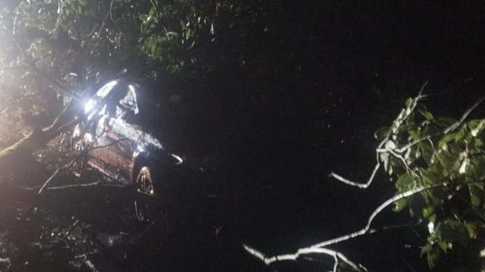 Mais tarde, na altura do km 498, outra árvore caiu sobre um veículo Jetta. Um casal estava no carro, mas ninguém ficou ferido.