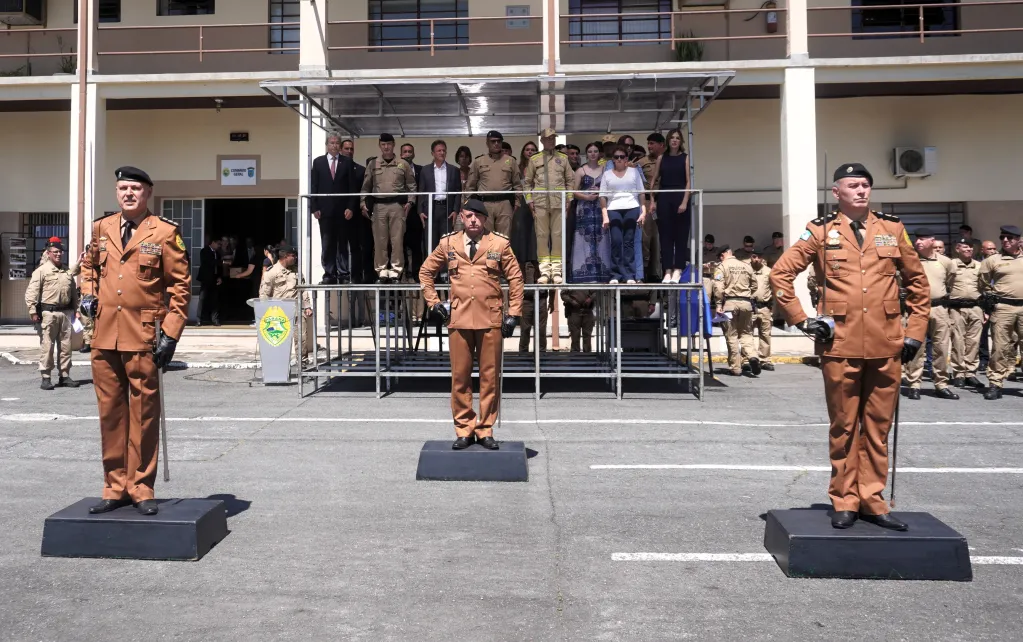 Nesta quarta-feira (11), o Tenente-Coronel Rogério Gomes Pitz assumiu oficialmente o Comando de Policiamento Especializado do Paraná, em Curitiba. A solenidade da Polícia Militar contou com a presença do Comandante-Geral da PMPR, Coronel Jefferson Silva. O Coronel Emidio Angelotti transmitiu o cargo para Pitz, que assume a coordenação do setor em todo o Paraná. Ele ficará responsável pelo Regimento de Polícia Montada, Batalhão de Polícia Rodoviária, Batalhão de Polícia de Trânsito, Batalhão de Polícia Militar Ambiental, Centro de Operações Policiais Militares, Batalhão de Polícia Escolar Comunitária e Ação Integrada de Fiscalização Urbana.