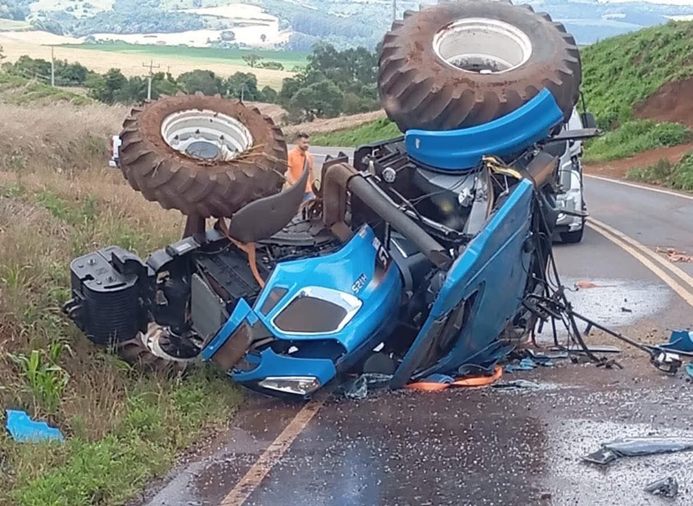 A máquina agrícola que teria disso adquirida na semana passada estava sendo transportada de Itapejara até a fazenda do proprietário, na zona rural de Coronel.