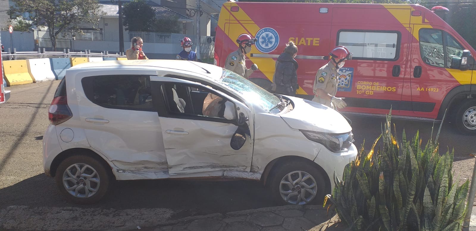 Por volta das 13h50 desta quarta-feira (21), socorristas do Corpo de Bombeiros foram acionados para prestar atendimento à uma mulher que ficou ferida após o veículo que ela conduzia tombar no centro de Francisco Beltrão.